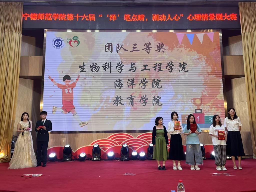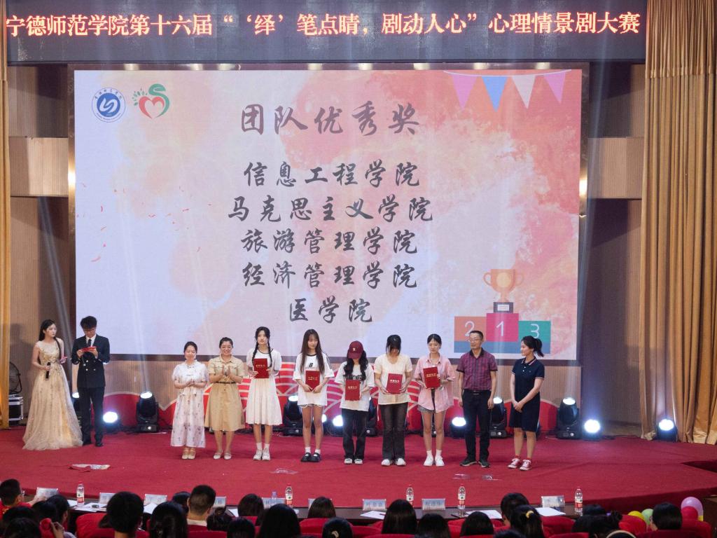 本届心理情景剧大赛由学生工作部(处)主办,心理健康教育中心承办,学生发展与服务中心协办。学工处心理健康教育中心邀请宁德师院宣传部副部长林秀椿,宁德市心理咨询师协会会长林新霞,宁德师范学院教育艺术学院副教授丁晶,宁德市实验学校张文馨,宁德市康复医院叶嘉嘉担任评委。