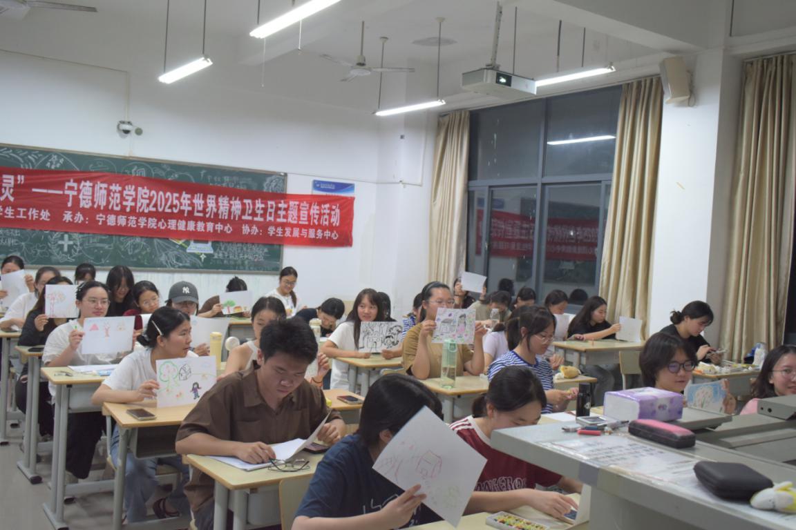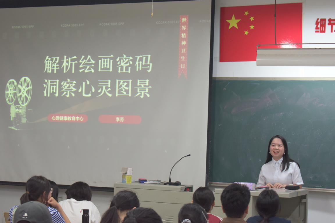 在第34个“世界精神卫生日”到来之际,为增强学生心理健康意识,强化心理健康教育宣传,宁德师范学院心理健康教育中心于2025年10月13日晚在求是楼DB407举办“解析绘画密码,洞察心灵图景”主题讲座,由心理健康教育中心李芳老师带领同学们开启心灵探索之旅。