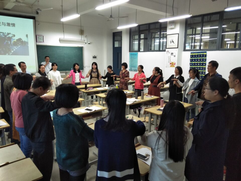 11月11日,一天,罗老师为大家带来为高三老师开展“快乐合作,感悟幸福”的素质拓展活动。罗老师以一个小游戏——“异掌同声”开场,组织参加培训的老师们体验了海水分开、举案齐眉、动力圈、生日排序、智取核弹、互助按摩操等互动游戏和心理游戏,让老师们集中注意力的同时,感受心理游戏的魅力,并能将快乐与活力带到课堂中去。