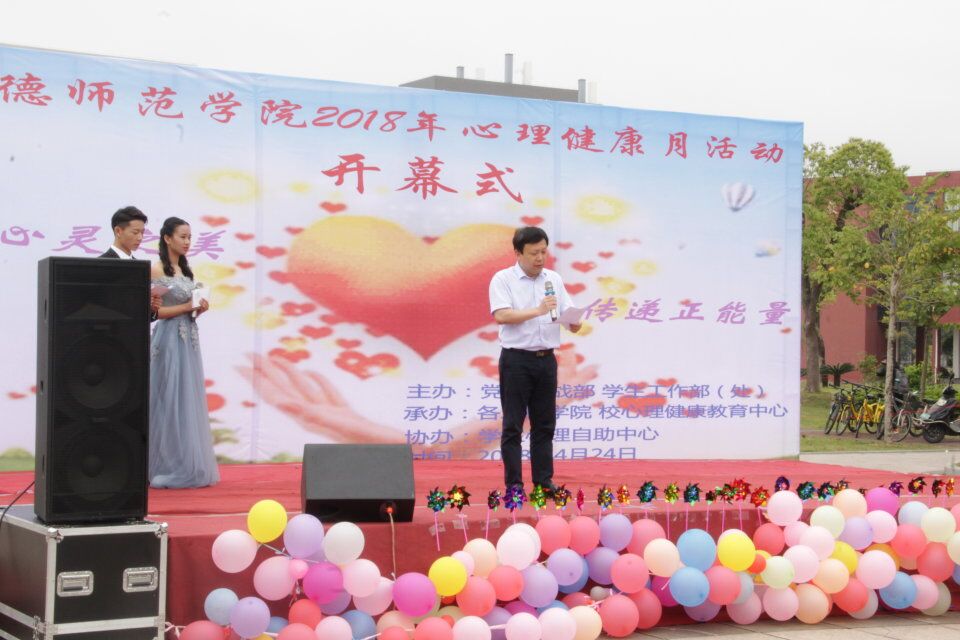 为进一步提高大学生心理健康意识,树立健康理念,积极营造健康和谐的校园氛围。2018年4月24日下午由校党委统战部和学生工作部(处)联合举办的2018年心理健康月开幕式活动在新校区求索大道顺利举行。本次开幕式邀请了校党委副书记徐晓丹、副校长颜桂炀,宁德市委文明办、宁德市心理咨询师协会领导以及校统战部、学生工作部(处)、校团委等部门领导、民主党派、无党派人士代表、各二级学院师生代表近千人次参加开幕式。