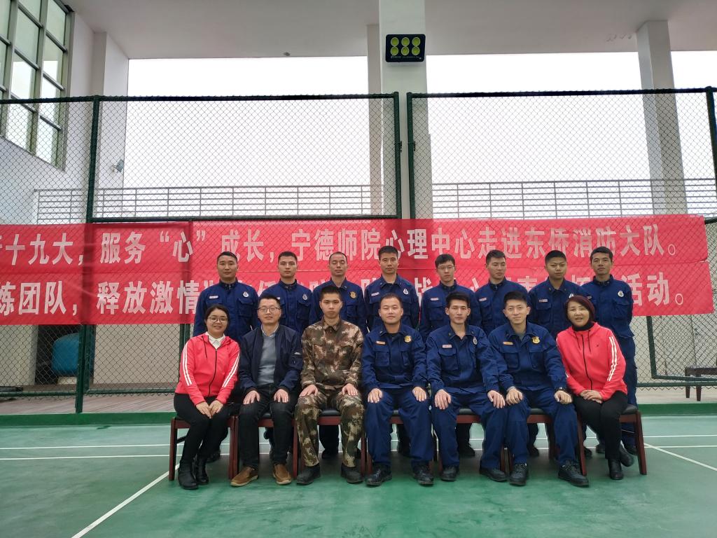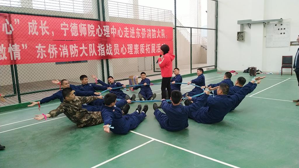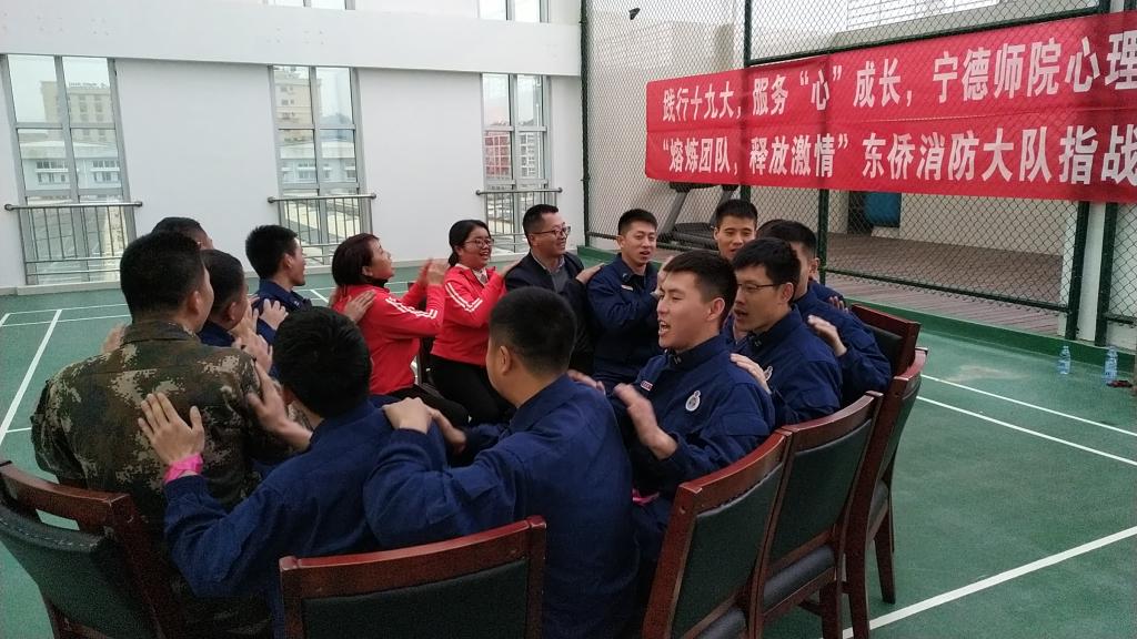 当前,正值消防体制改革和春季消防安保任务关键时期,全体消防指战员的压力明显增大。为扎实做好一线消防指战员的心理疏导和矛盾化解,增强团队协作能力,2019年3月31日下午,我校学生工作部(处)心理健康教育中心受邀组织3位心理辅导老师到宁德市东侨消防大队为全体消防指战员进行了团体心理辅导。