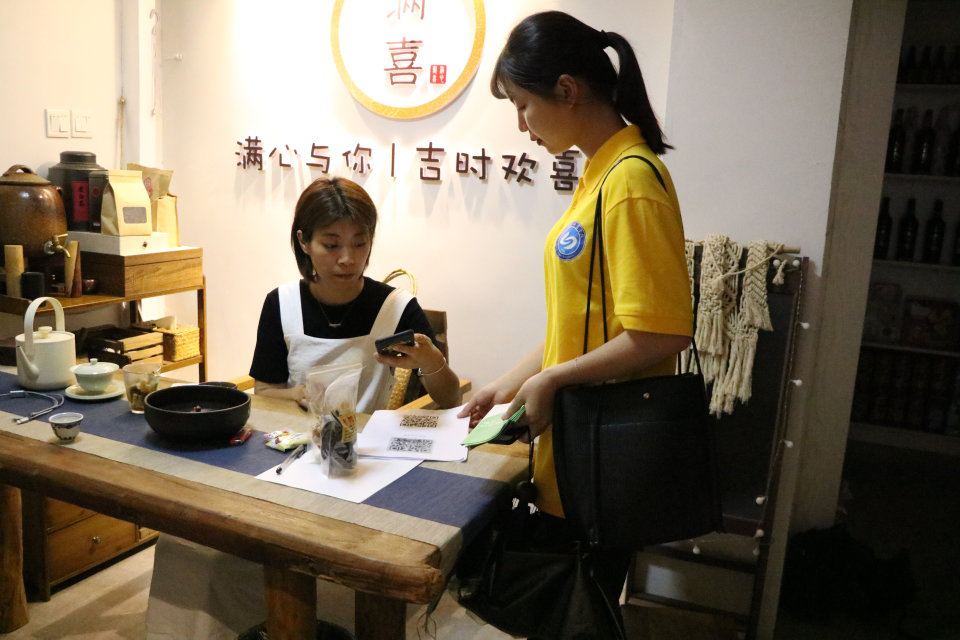 实践队在实地考察联信财富广场周围商家分布情况和初步预估人流量之后,采取进入新华都超市和周边各类商店分发宣传单的上门式宣传。在宣传过程中,更注重对知识的解释。