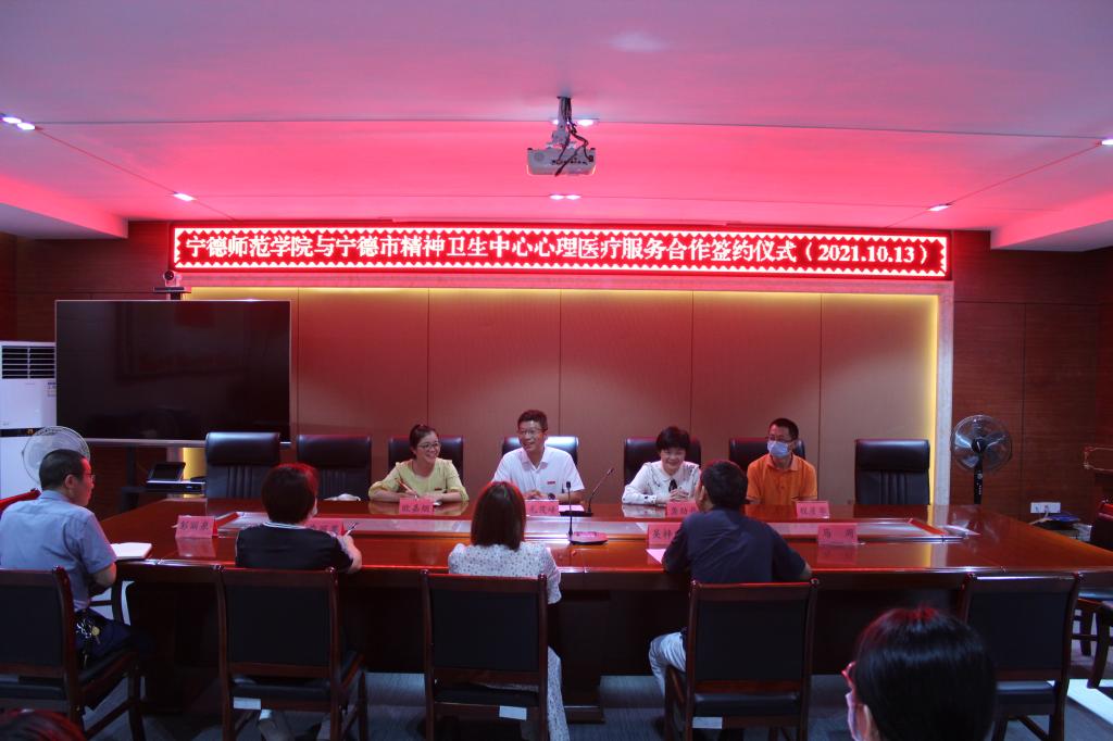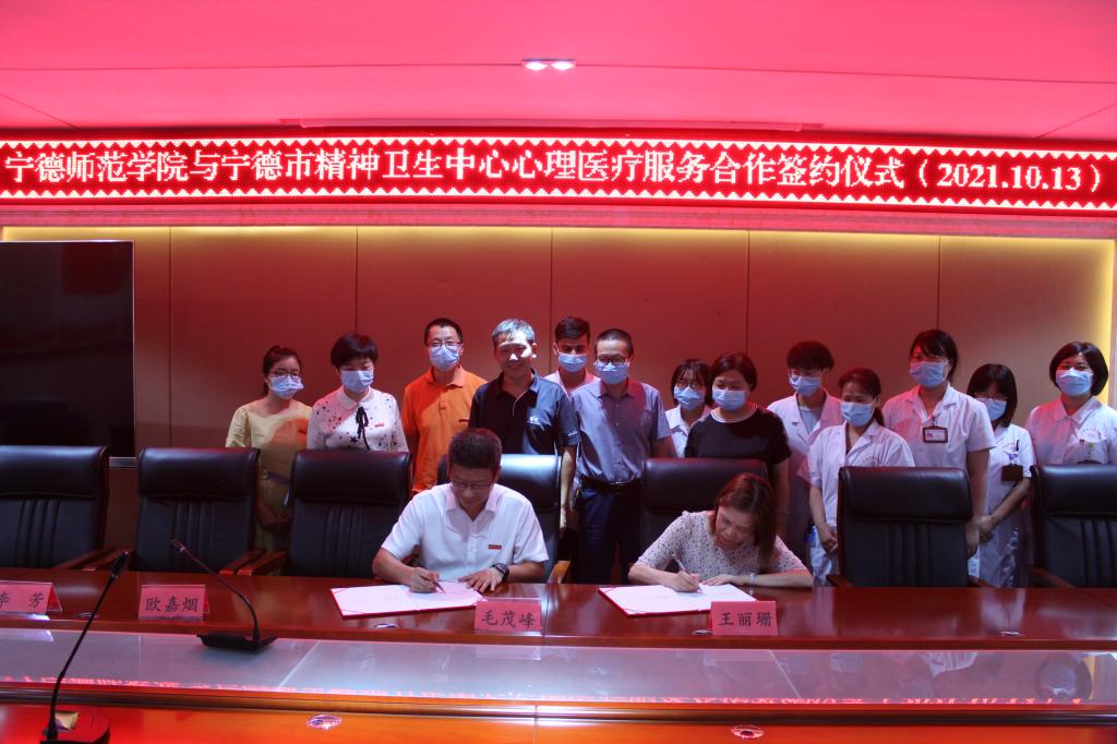 10月13日,宁德师范学院与宁德市精神卫生中心心理医疗服务合作签约仪式在宁德市精神卫生中心举行。我校学生工作部(处)部(处)长毛茂峰,副部(处)长龚劲丹,心理健康教育中心主任欧嘉烟;宁德市精神卫生中心院长王丽珊,副院长吴梓顺、黄丽英,工会主席彭丽泉,医务部主任马周等同志参与仪式。