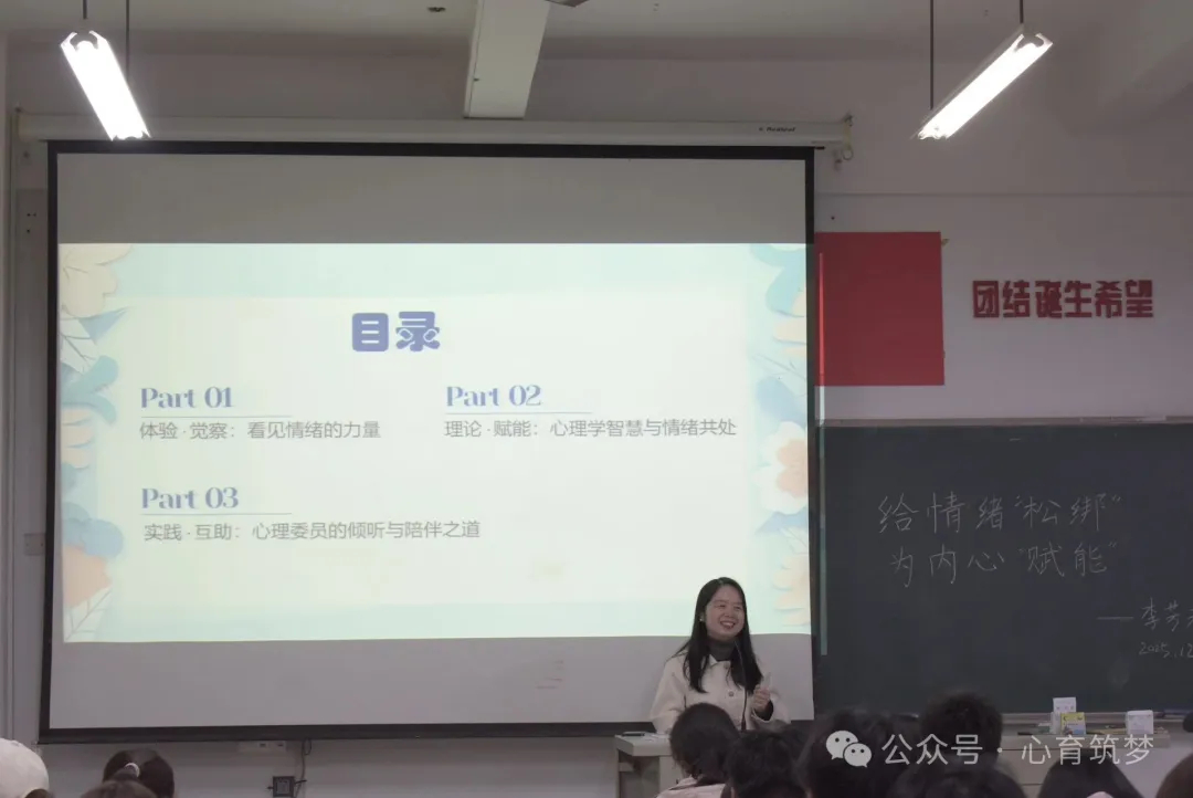 为进一步强化心理委员岗位履职能力,助力其系统掌握情绪疏导方法,2025年12月10日,我校心理健康教育中心于求是楼B205开展第二场赋能成长心理委员培训讲座。本次讲座由心理健康教育中心专职教师李芳老师主讲,围绕“给情绪‘松绑’,为内心‘赋能’”主题展开。